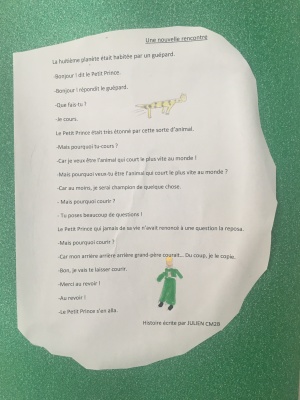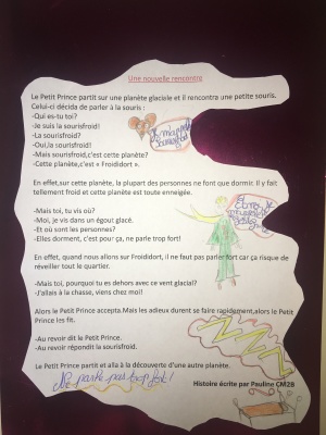 Les élèves ont imaginé le voyage du Petit Prince sur une nouvelle planète et la rencontre avec un nouveau personnage.