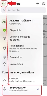 Si vous faites partie de plusieurs organisations ou si vous avez un compte Microsoft personnel, vous serez amené à changer de compte en fonction de vos besoins.