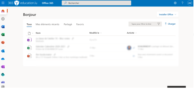 Vous avez accès, sur le bandeau de gauche, accès à toutes les applications proposées par Office 365, et en particulier, dans notre cas à Teams dont vous reconnaîtrez le logo.