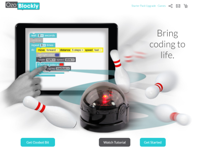 Ozobot peut également se programmer avec Ozoblockly (analogue à Scratch ou Blockly Games).