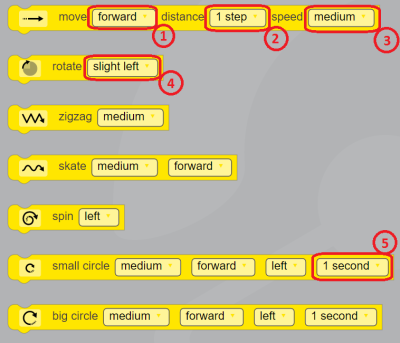 Le robot peut être programmé grâce au logiciel Ozoblockly. Ce logiciel permet de programmer non pas avec des lignes de code mais avec des blocs de couleur qu'il faut assembler.
