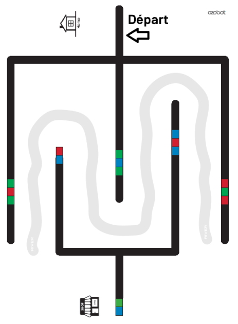 Assurez-vous qu'Ozobot commence à la maison, et qu'il arrive toujours à la boutique, quelque soit le chemin choisi.